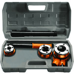 Клуппы изготовлены из высокоуглеродистой стали. Используются для нарезания дюймовой конической резьбы на трубах различных диаметров. Набор упакован в удобный пластмассовый кейс. Внимание: размеры в комплекте 1/2”, 3 /4”, 1”.